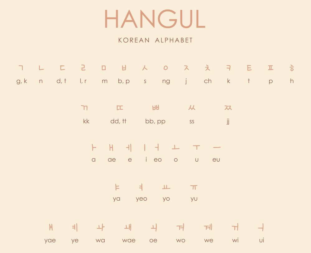 Pero lo primero es familiarizarse un poco con el Hangul (alfabeto coreano). Es bastante sencillo de aprender (solo te tomará un par de horas memorizarlo), y aunque no se recomienda utilizar la romanización para aprender coreano, en este post sí que lo incluiremos para que te resulte más fácil (pero ten en cuenta que algunos sonidos no existirán en otros idiomas).