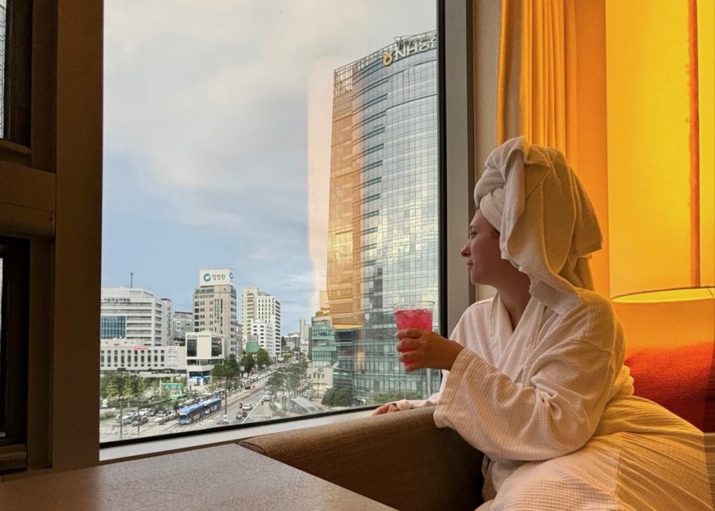 The hotel is a 1-hour drive from Incheon International Airport. To get there I got the 6002 Airport Limusine bus ( I explained more on how to get to Seoul on this post), which was so convenient after so many hours of travelling and it dropped me off in front of the hotel.