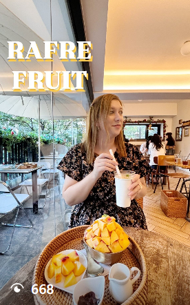 ESP – Si te encantan las frutas y los postres, tienes que visitar ‘Rafre Fruit‘, situado junto al parque Seoul Forest y cerca de la zona de Seongsu. Recomiendo muchísimo este lugar. De hecho, fue la primera cafetería en la que tuve que esperar casi una hora para entrar, ¡pero valió totalmente la pena!