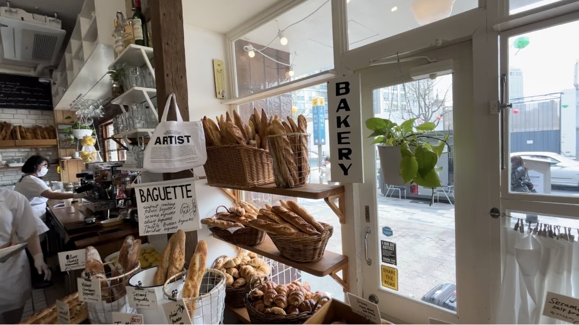 ESP – En mi paseo por el barrio de Anguk‑dong (distrito de Jongno‑gu) de Seúl, decidí parar en Artist Bakery, un lugar del que había oído hablar bastante y que cada vez que pasaba por allí, estaba llenísimo! Llegué con ganas de algo sencillo pero especial, por lo que escogí el pan de sal (salt bread) y una limonada para acompañar.