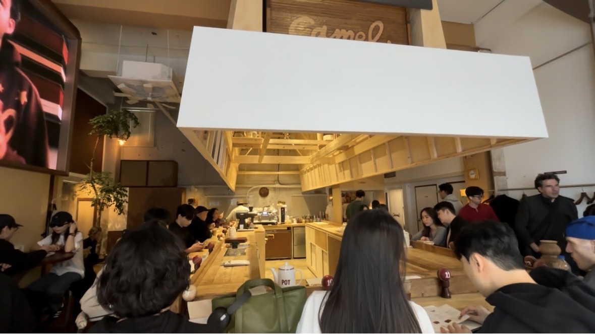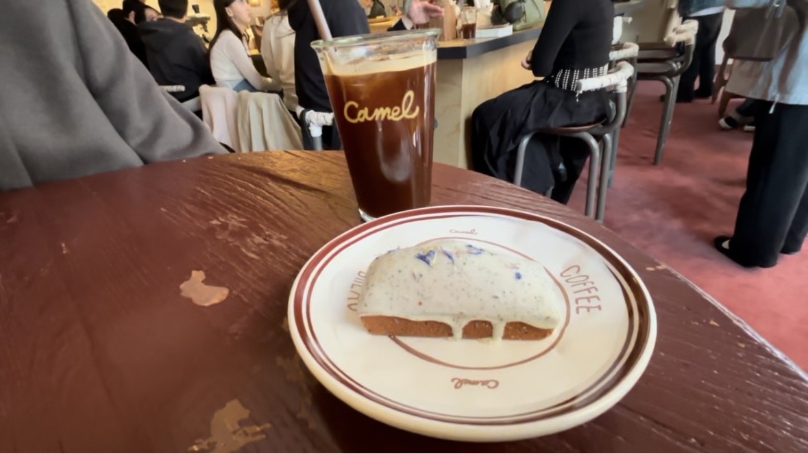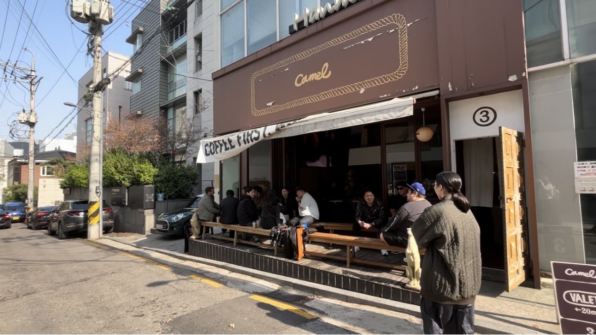 ESP – En mi primera visita a Seúl, fui a Camel Coffee (ubicado en el elegante barrio de Dosan‑ro / Apgujeong). Ese día quería probar algo diferente, así que pedí su bebida de “misugaru” (una mezcla de polvo de granos mezclados; arroz, cebada, frijol, etc. diluidos en leche), que en este café aparece como bebida especial. El sabor y textura me resultaron un tanto curiosos, tenía un toque algo terroso o de cereal tostado que no esperaba y llenaba muchísimo. No es excesivamente dulce, lo que me sorprendió para bien, y acompañó muy bien el ambiente del lugar. El espacio tiene una estética que mezcla lo retro‑industrial con toques modernos: muebles de madera oscura, hierro, iluminación suave, y detalles de diseño que parecen escogidos con cariño. La sucursal de Dosan no es demasiado grande por lo que resulta muy acogedor. Además cuentan con una zona para sentarse en el exterior, en unos bancos, lo cual es ideal para cuando hace buen tiempo y puedes observar a la gente pasar mientras disfrutas de tu bebida. Está en un barrio muy chic pero no tan abarrotado como algunos cafés turísticos de Seúl, lo que permite un entorno más relajado. La bebida de misugaru fue una nueva experiencia, perfecta si te apetece algo distinto al típico café o latte.