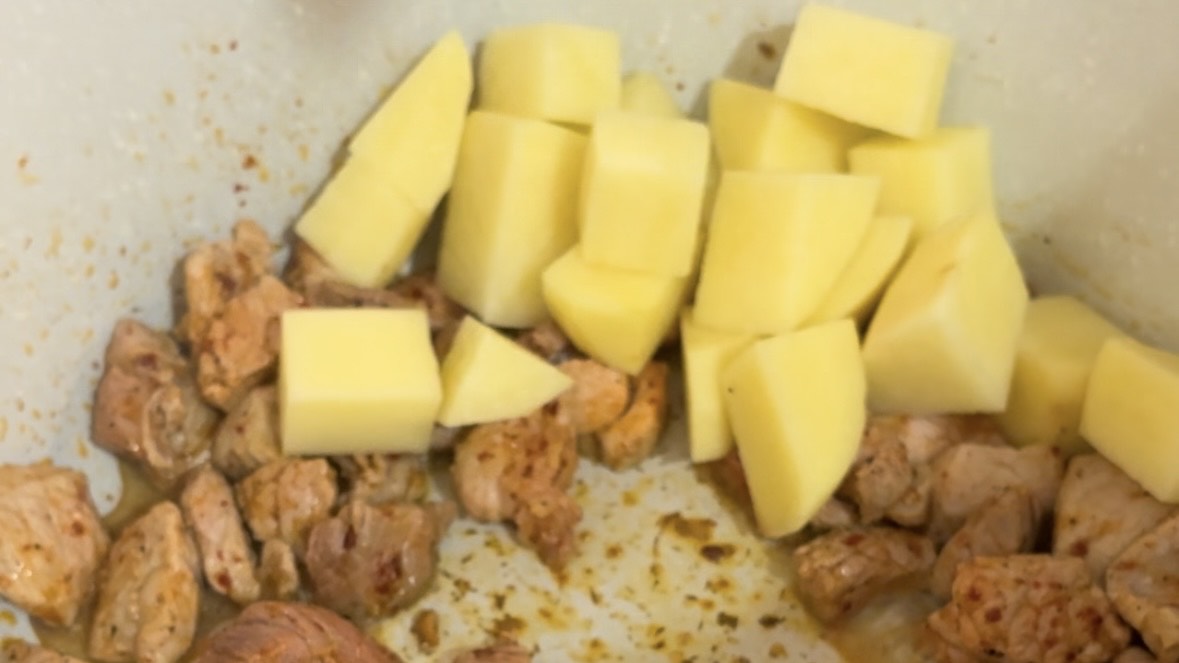 4. Add the vegetables, starting with the harder ones (potato, onion, zucchini—in this order).