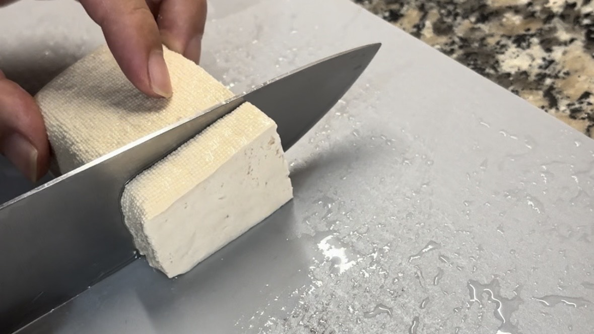 Tofu firme cortado en trozos de 1cm espesor